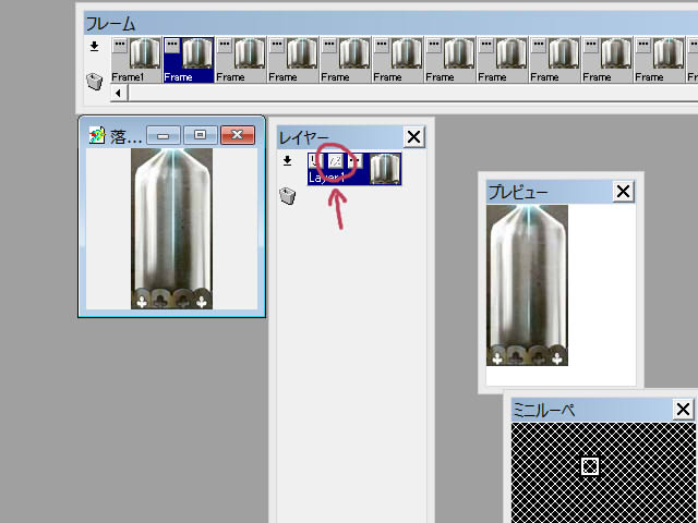 早速いじってみましたが、2フレーム目が何度やっても